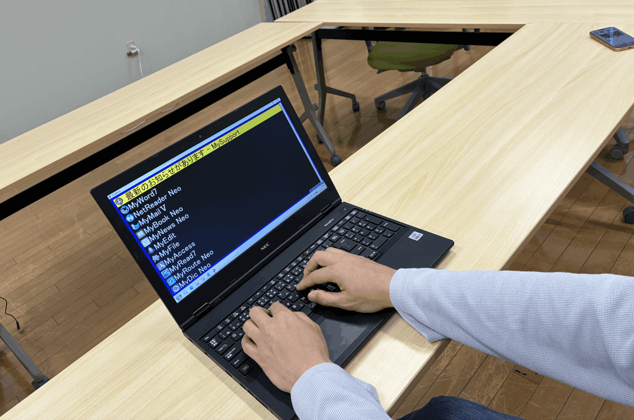 視覚障がい者向け音声読み上げソフトを導入したパソコンでの操作体験や自分で操作できるようになるための支援を行います。